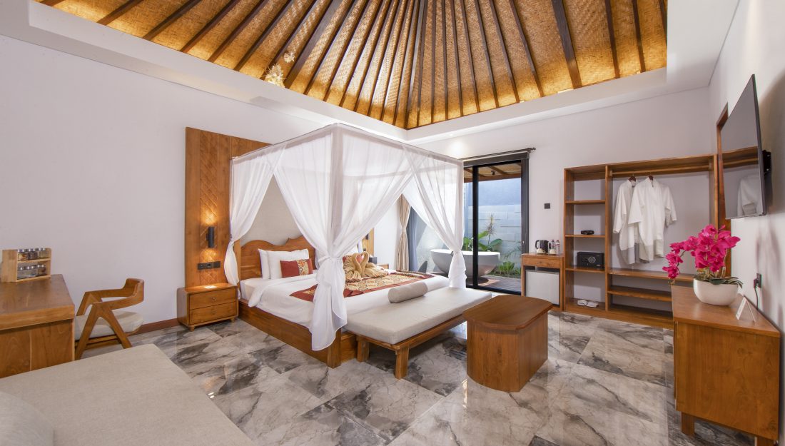 One of the highlights of Villa Serenity is its outdoor space. The private infinity pool overlooks lush greenery, making it the ideal spot for a morning swim or an evening dip. The garden, filled with vibrant flowers and exotic plants, offers a tranquil setting for meditation or yoga.